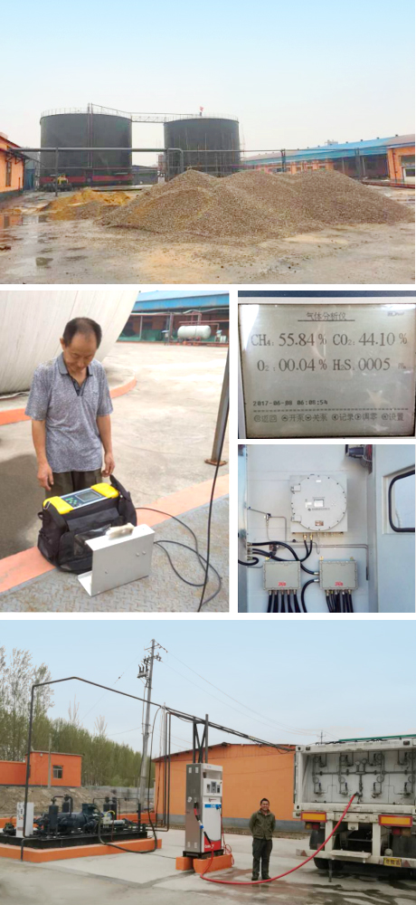 通過項目現(xiàn)場與技術人員洽談沼氣工程監(jiān)測解決方案,最終確定使用 1 臺便攜式紅外沼氣分析儀 Gasboard-3200L 和1臺防爆型在線紅外氣體分析儀 Gasboard-3500,其中Gasboard-3500 由東阿縣綠地生物能源科技有限公司委托北京三益能環(huán)集成配套,現(xiàn)場安裝。